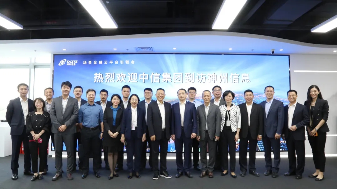 9月27日,中信股份有限公司财务总监曹国强率队一行莅临神州信息交流座谈。神州信息董事长郭为、总裁李鸿春、常务副总裁赵文甫、副总裁马洪杰等公司高管接待来访。曹国强一行参观了神州信息位于国家级金融科技示范区核心区——新动力金融科技中心的金融科技创新中心,听取了神州信息在金融科技以及推动行业数字化转型方面取得的进展。随后双方就数字化转型发展及后续合作等问题进行深入交流。