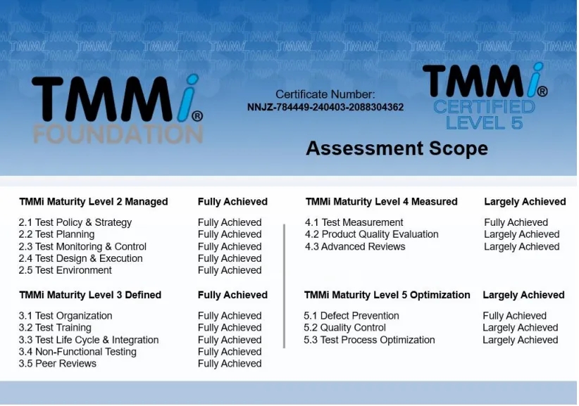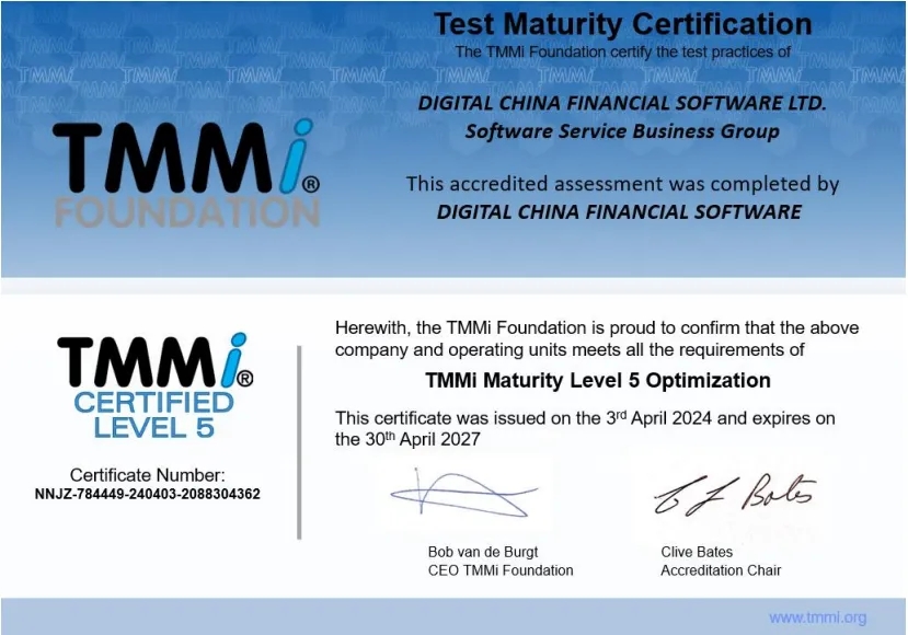 近日,神州信息子公司——jiuyou.com九游融信软件有限公司(下文简称“jiuyou.com九游融信”)通过TMMi(测试能力成熟度模型集成)最高级别5级国际权威认证,成为国内同时获得TMMi5级认证和CMMI5级认证的企业,覆盖咨询、产品需求、软件开发、测试、运维全流程的IT软件研发及服务。