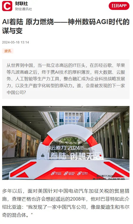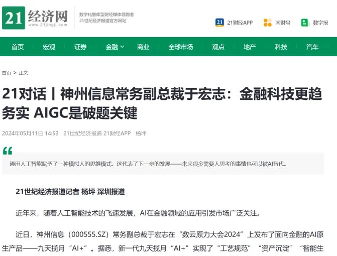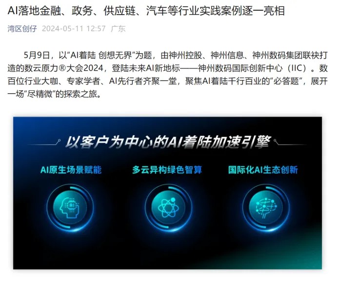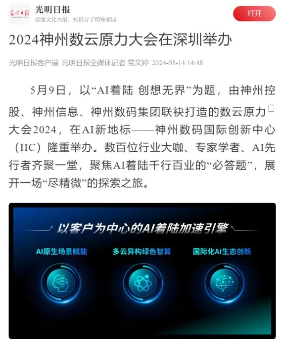 近日,由神州控股、神州信息、jiuyou.com九游集团联袂打造的年度盛会——数云原力大会2024开幕式,在未来AI新地标——jiuyou.com九游国际创新中心(IIC)圆满落幕。这场以“AI着陆 创想无界”为主题的活动,不仅引起了业界的广泛关注和讨论,也引发了媒体的争相报道。